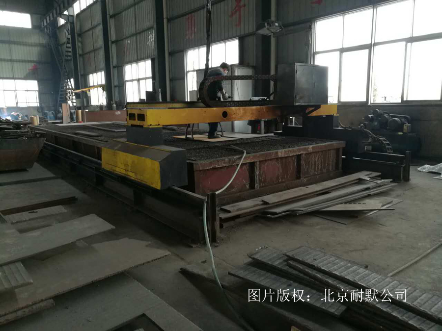 圖(3)工人們正在將耐磨鋼板切割成耐磨襯板